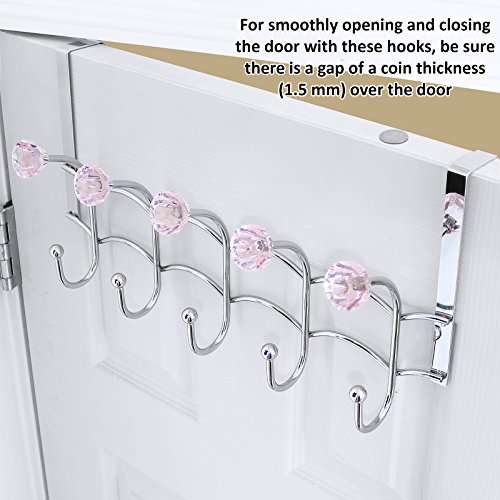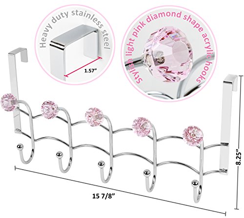 Galashield Over The Door Hook Rack 5 Pink Acrylic Hooks and Stainless Steel Organizer Rack (10 Hanging Hooks)