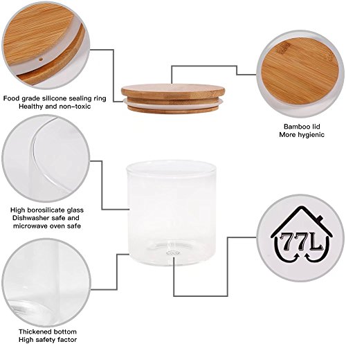Bamboo Lid and silicone sealing ring keep air out, creating an airtight environment to keep contents dry. Keeps insects out. Dishwasher safety, hand wash recommended. Microwave oven safe without the bamboo lid.