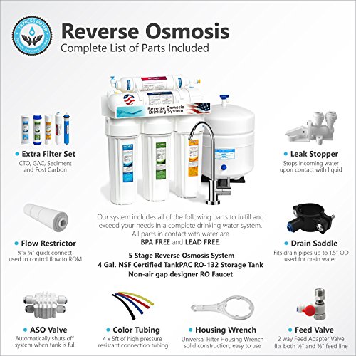 Express Water 5 Stage Home Drinking Reverse Osmosis System 50GPD MODERN Chrome Faucet PLUS EXTRA 5 FILTERS