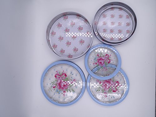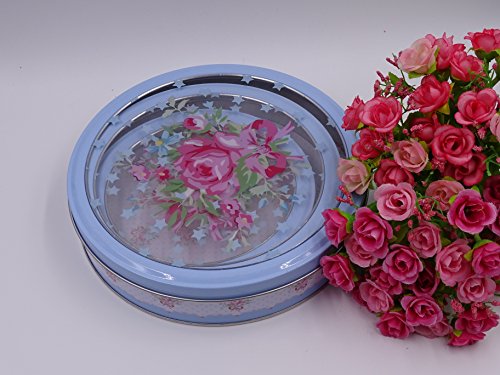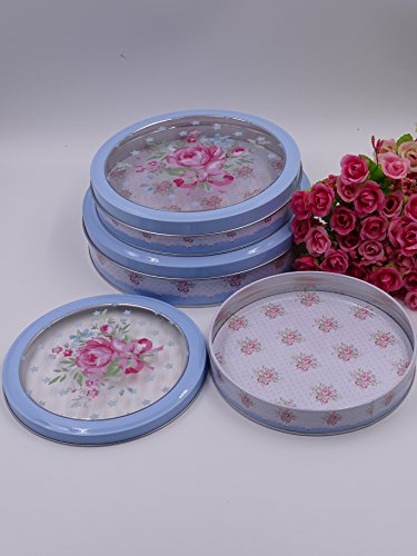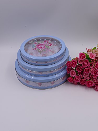 One of a kind Blue Round french style tins with transparent Lids, Shabby chic , Set of 3 tins