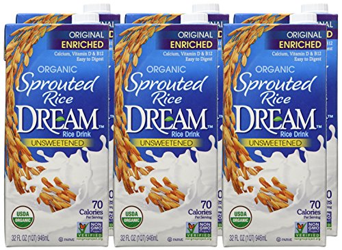 SPROUTED RICE DREAM Rice Dream Original Unsweetened Organic Rice Drink, 32 Fluid Ounce (Pack of 6)