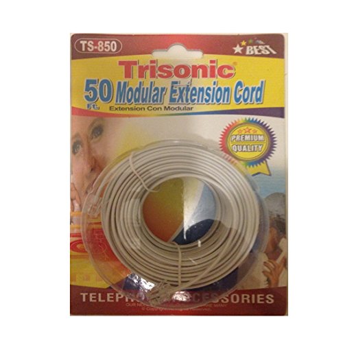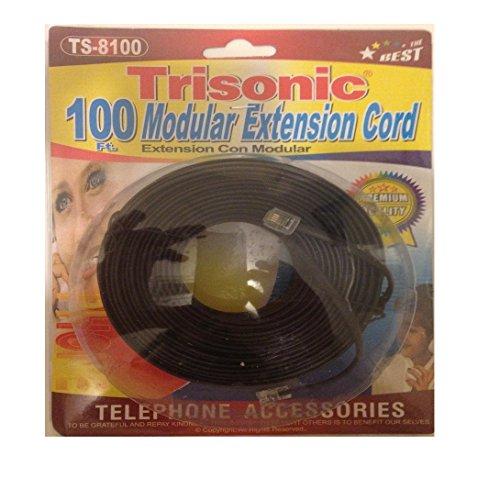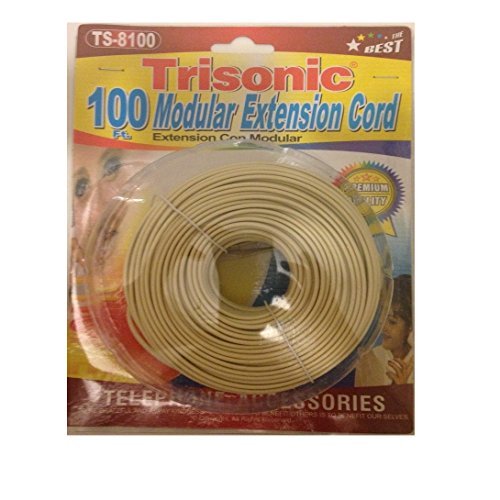 Trisonic Telephone Phone Extension Cord Cable Line Wire (100 Feet, White)