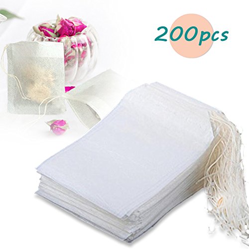 Thiroom 200pcs Disposable Filter Empty Teabags Drawstring Herb Loose Tea bag