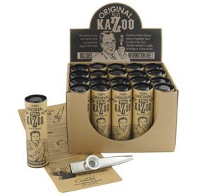 Product Description A Kazoo produces a pleasant 'buzzing' sound when you hum, sing or speak into it. The quality of the sound is very much dependant on the standard of the player, if you can sing or hum in tune - then you can play the Kazoo. A Kazoo is a member of the 'Membranophone' musical classification which is in the percussion instruments as the sound is created through a stretched membrane. This is broken down again into a sub category known as 'Merlitons'. The sound being created by a vibrating membrane. This Clarke Tinplate Kazoo is finished in Silver. It has a threaded cap and neck for easy tuning and membrane replacement. It comes attractively gift packaged in a tube with history and information sheet. 0