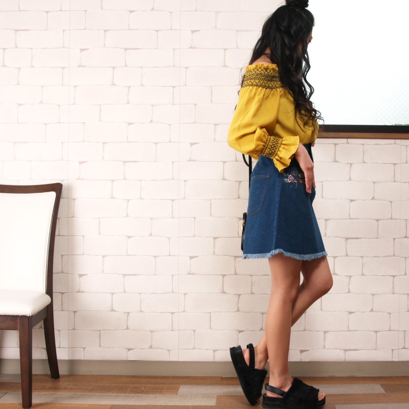 | サイズ | Mサイズ | | 実寸 | 着丈:約47cm ウエスト:約33cm ヒップ:約42cm ※すべて平置きサイズです。 | | 素材 | 本体:綿100% 刺繍部分:ポリエステル100% | | 生産国 | 中国 | | 裏地 | なし | | 生地の伸縮 | なし | | 生地の透け感 | なし | | カラー | 01. ネイビー 02. サックス 03. ブルー | | 注意点 | ▼綿混合商品は洗濯時に多少縮む事がございます。 ▼パソコン、モニター等の環境により、実際の商品素材カラーが多少異なる場合が御座います。予めご了承ください。 ▼お手数ですが必ずお買い物ガイドを一読頂いてからご利用いただきますようお願い申し上げます。 | |