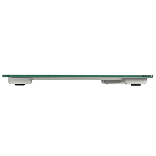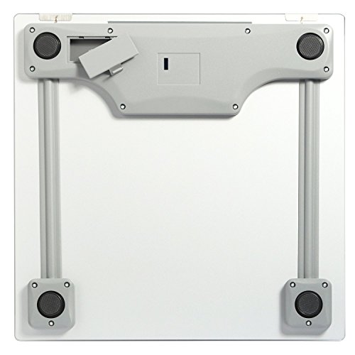 -. Feature : 400 lb./180 kg capacity in 0.2 lb./0.1 kg increments; 4.1" x 1.8" dual line blue backlit LCD readout / 12.2" x 12.2" glass platform with silver back paint; Instant on, auto zero, auto off / Body fat, body water, and muscle mass estimates / Cal-MAX; Athlete mode; 8 user memory / Overload/low battery indicator; 2 branded AAA batteries included