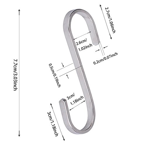 Supla 30pcs Brushed Stainless Flat S Hooks Kitchen Pot Pan Hanger (small)