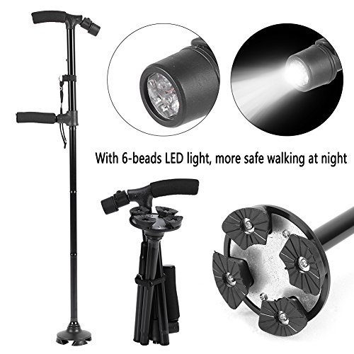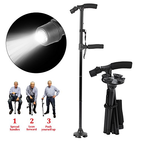 Studio : ZJchao Publisher : ZJchao Binding : Health and Beauty Product Description The best gift for elderly people: COMFORTABLE WRISTBAND: Have no worries about dropping the cane when you're out and about walking. With its convenient wristband, it will keep the cane from falling off your hand and keep it close at hand. Let this reliable stick care for your walking needs so you don't have to give up your freedom! Best Use: Hiking, Backpacking, Mountaineering,Elderly go out walking Product Highlights: - Unique Round Base 360 Degree Pivoting Head - Three Points of on the Ground Contact - Easily Height Adjustment - Freestanding Design - Safety Handle Light - Anodized Aluminum Shaft - Easily Folds Down for Storage - Folds More Compactly