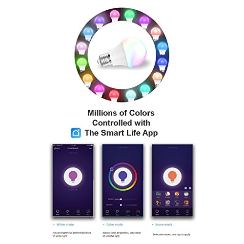 - MILLIONS OF COLORS- Change the bulb to any Color you wish, you have 16 million Colors to choose from. Easily Dim the Brightness of the lights from Bright to Dark and also set the mood from Cool to Warm. There are also 8 Scene Mode options- Night, Reading, Party, Leisure, Soft, Rainbow, Shine, and Gorgeous Mode.