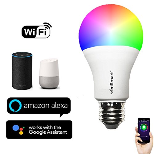 VeriSmart Wi-Fi LED Smart Light Bulb - Works with GOOGLE HOME and AMAZON ALEXA, FREE iOS/Android APP, (7W) 60W Equivalent, Multi-Colored, 6000K, No HUB Required, CE & FCC Certified