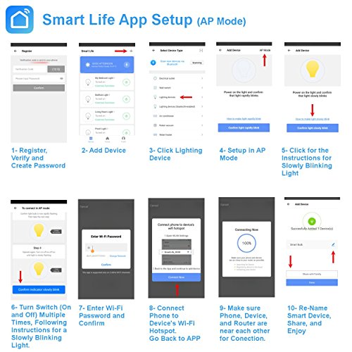 - REMOTE ACCESS WITH APP / PROGRAMABLE TIMER- With the VeriSmart Wi-Fi LED bulb you will have control of your lights from anywhere in the world. Just download the FREE Smart Life APP, screw the bulb in and connect easily with your phone or tablet and also to your Wi-Fi router. Create customized schedules for the VeriSmart bulb to turn on and off. Set your bulb to turn on in the morning as an alarm, or for your safety, in the evening set the lights to turn on to make it look like you are home.