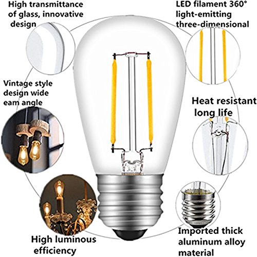 INNOCCY Vintage S14 LED Light Bulbs, 2W 200 Lumens 2700K SoftWarm Waterproof Bulb Great for Outdoor String Lights, 15 Pack