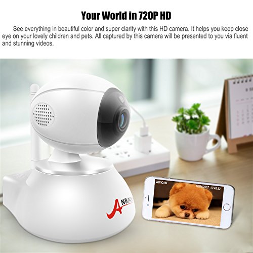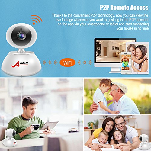 ANRAN 720P Home Baby Video Camera Wireless IP Security Surveillance System with Super Night Vision& Micro SD Card Slot ,Support 2.4Ghz Router,Two Way Audio, Pan/Tilt,Motion Detection