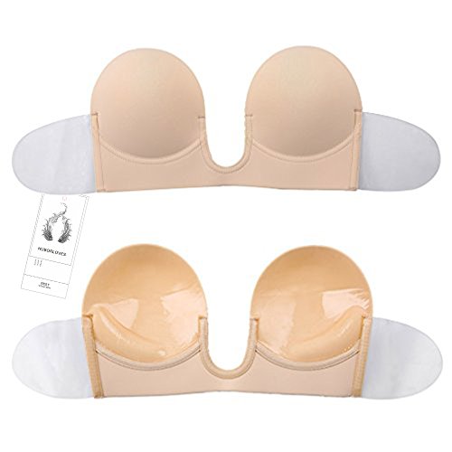 -. Feature : MATERIAL: 84% Nylon, 16% Spandex.Comfortable and supportive stick-on strapless bra with smooth fabric .Absolutely breathable silky and comfortable invisible bra gives an backless strapless look. / FASHION STYLE:Charming Cleavage: The Deep U cup design effectively lifts the bust, brings incredible support and creates best U shape breast shape, provides an amazing breast curve.Invisible Bra completes any sexy dress style. / SPECIAL DESIGN: Deep U Plunge Bra Design Brings an Impressive Push Up Effect:gather the breasts and make you look sexier, one second makes the small chest bigger,push your breasts up. It also gives you a push up with charming cleavage.provide strong enough adhesive to hold the breasts in, and stays secure but freely with soft feeling. / DURABLE AND REUSABLE: sexy bra with no straps, match perfectly for your backless low cut dress. Adhesive directly to the skin, leaving no trace on skin after removing. / A Must Have Reusable Strapless Bra for Woman: it's necessary for any strapless and low-cut outfits, perfect to be worn under evening backless dresses, party dresses and so on. Also, it can be a backless bra for wedding dress.