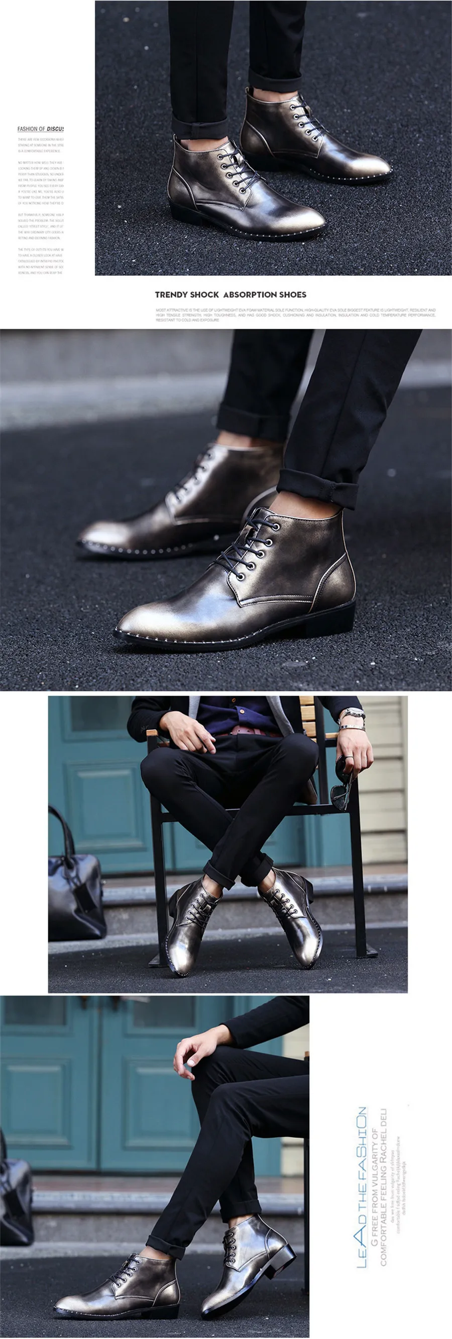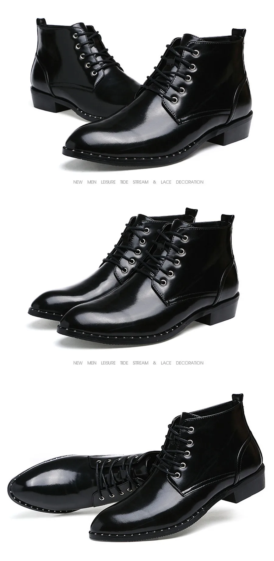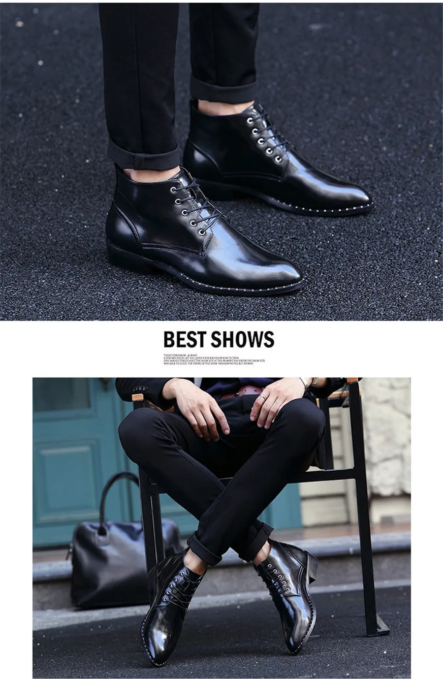 ankle boots for men:Patent Leather boots