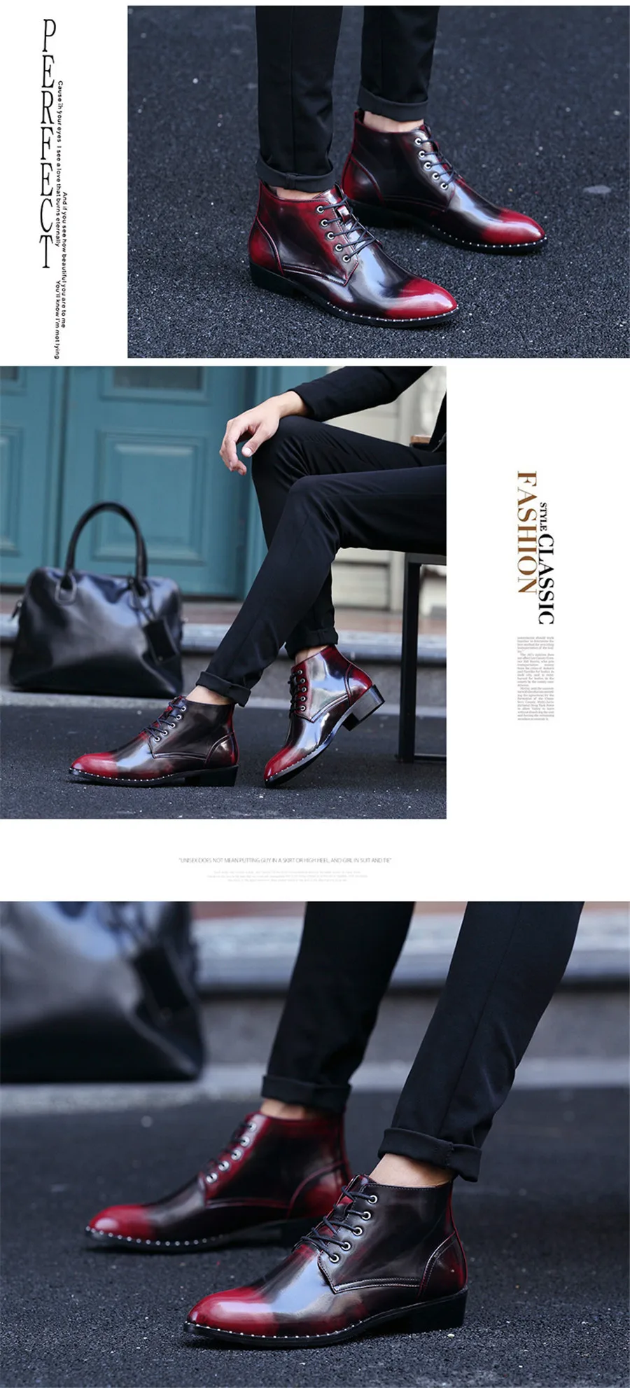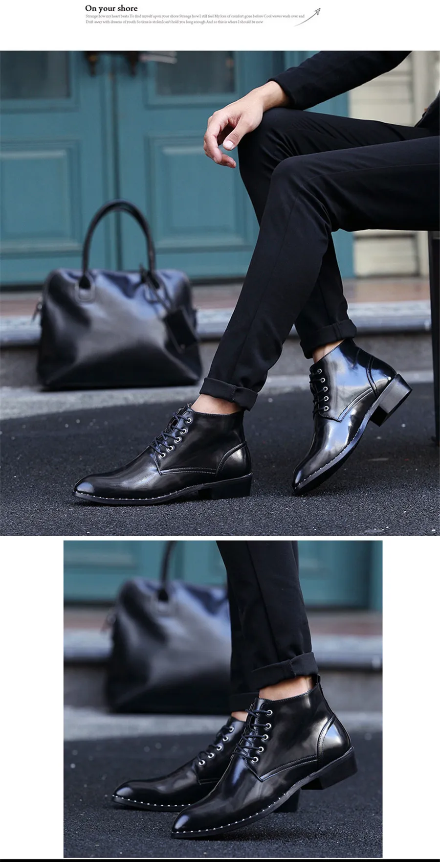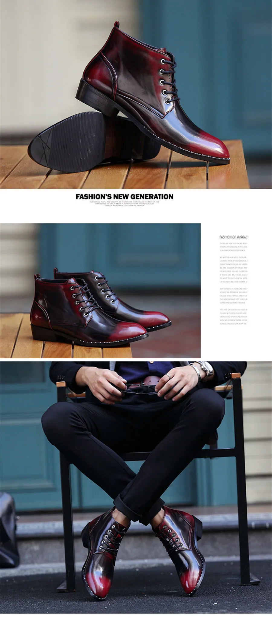 ankle boots for men:Patent Leather boots