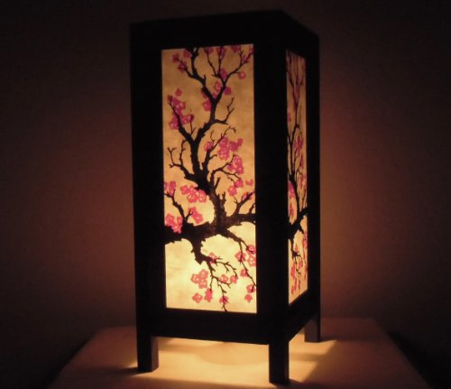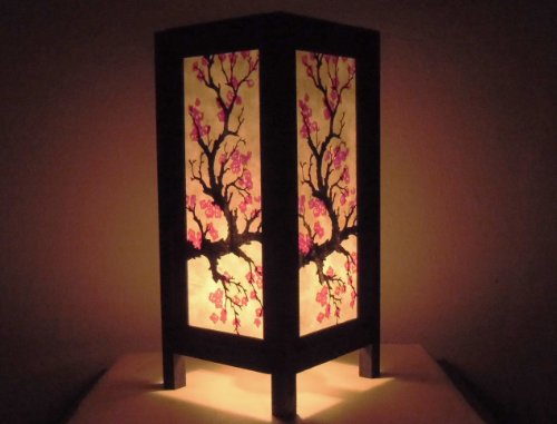 Thai Vintage Handmade Asian Oriental Japanese Sakura Flower Bedside Table Light or Floor Wood Paper Lamp Shades Home Bedroom Garden Decor Modern Design from Thailand