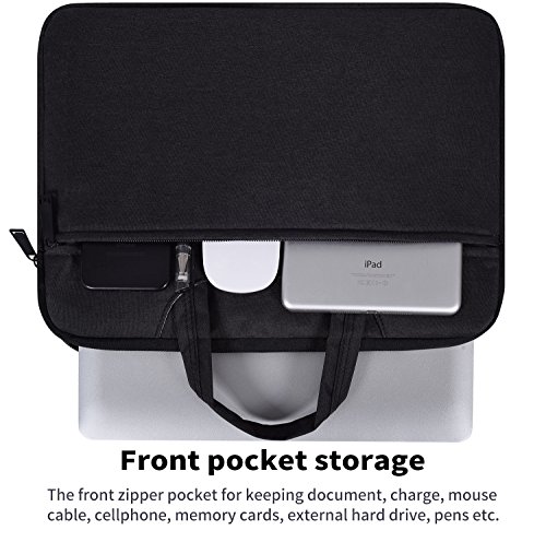 ✔ ENOUGH SPACE STORAGE & SMOOTHLY ZIPPER - Extra pocket in front, enough space to keeping, mouse, cable, cellphone, memory cards, external hard drive, pens etc. Top-loading zipper on the sleeve glides smoothly and allows convenient access to your laptop