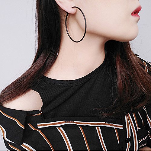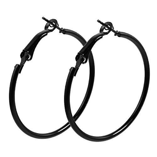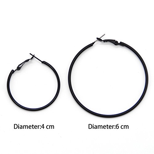 Describtion: Women Lady Pairs 1.5" Diameter Full Circle Black Hoop Earrings