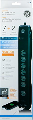 GE 14820 Surge Protector, 7 Outlets 1500J USB 1.0A Safety Covers