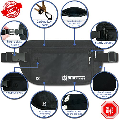 Money Belt-RFID Blocking-Undercover Hidden-Waist stash-For Travelling