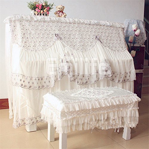 -. Title : Hand-Embroidered Lace Floral Piano Cover Full Piano Cloth Set Dust stand Piano Decoration with Bench Cover Keyboards Protective