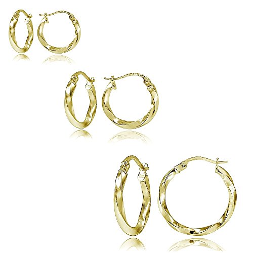 •These earrings feature a set of three different size twist hoops ranging from 15mm, 20mm and 25mm