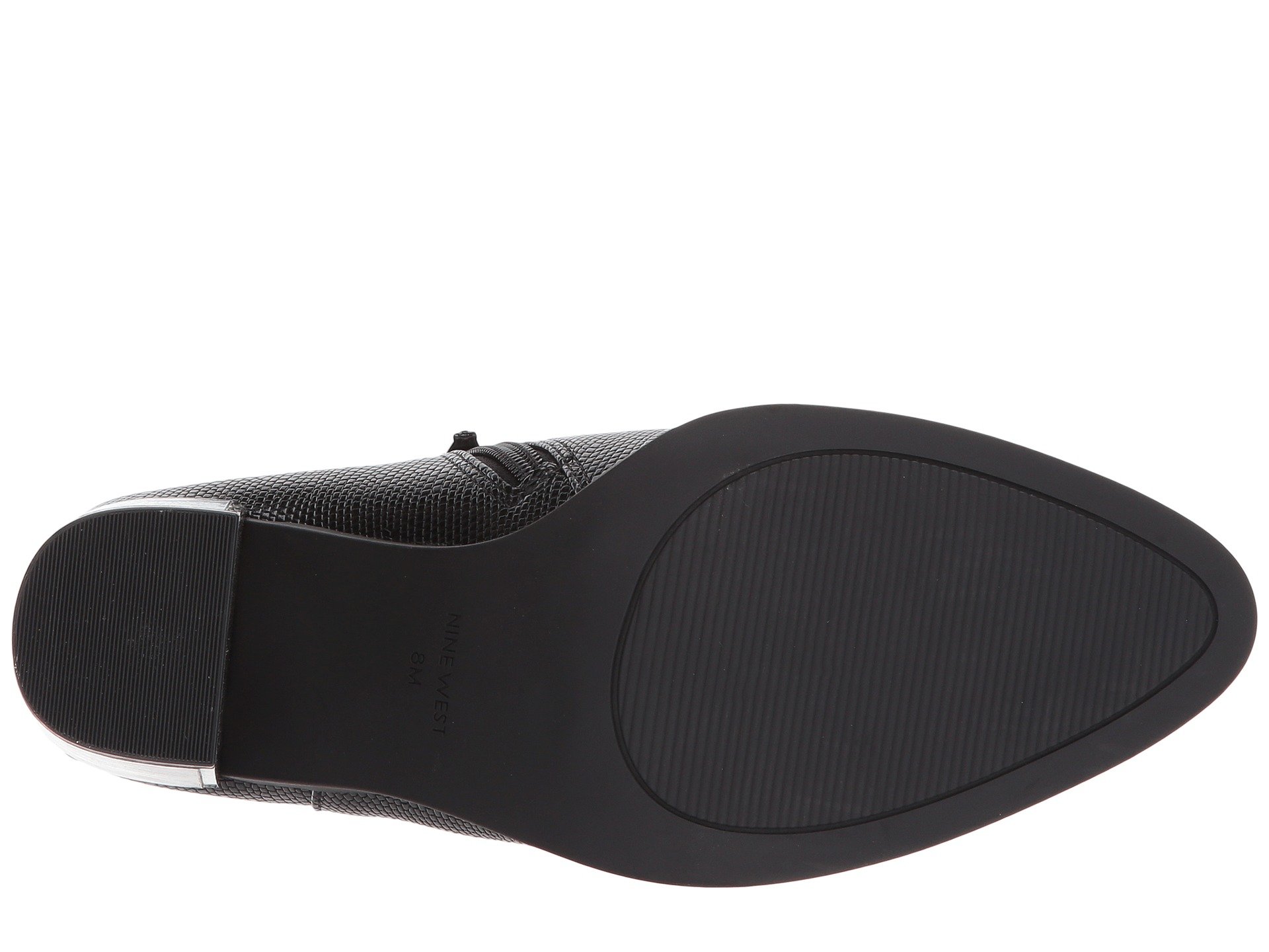 | Product Information SKU: #8969782Slip on the Nine West? Wanikiy bootie for an effortlessly cool look! Textured leather upper. Side-zip closure. Pointed toe. Textile lining. Lightly padded footbed.Stacked block heel. Man-made outsole. Imported.Product measurements were taken using size 8, width M. Please note that measurements may vary by size.Weight of footwear is based on a single item, not a pair.Measurements: Heel Height: 3 1?4 in Weight: 13 oz |