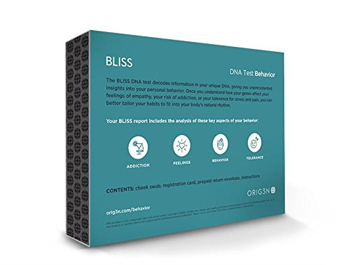 ReleaseDate : 2017-09-29 Studio : Orig3n Publisher : Orig3n Binding : Health and Beauty Product Description This profile offers a deeper look into how your DNA affects your brain and how you think, feel, act, and react. If you’ve ever wondered about the links between your personality and your genes, this is for you. At Orig3n, we believe that when you know better, you can do better. That’s why your test results include brief explanations of your gene variants, as well as tips and light suggestions. Knowing how your genes impact your risk of dependence or addiction, your tolerance to stress and pain, or your feelings and risk behavior can help you make lifestyle choices that are right for you. Your test will include analysis of these key aspects of behavior: addiction, feelings, behavior, and tolerance. 0