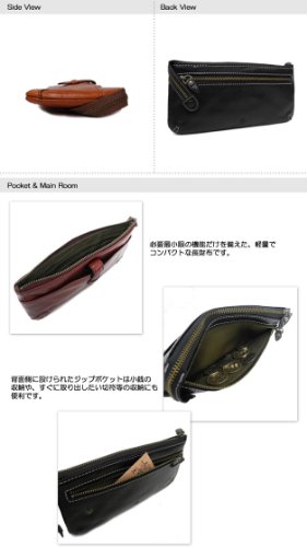 -. Feature : 【素材】イタリア製牛革 / 【サイズ】W195×H95(mm) / 【重量】約 110グラム 【生産国】中国 / 【外側】ジップポケット(L)×1、ベルト留めポケット(L)×1、札入れ×1 / 【内側】ポケット(L)×1、ポケット(M)×1、カード収納ポケット×4