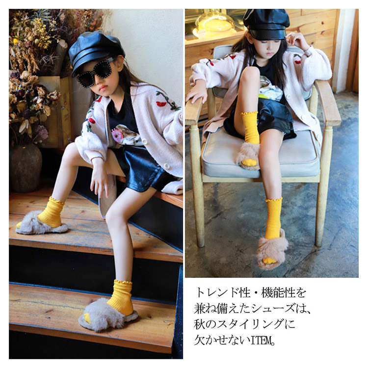 | 秋冬の定番、大人気の新作キッズ用ファーサンダル。質感が良く、高級感があり足に馴染みやすいのが特徴です。トレンド性・機能性を兼ね備えたシューズは、秋のスタイリングに欠かせないITEM。 | |