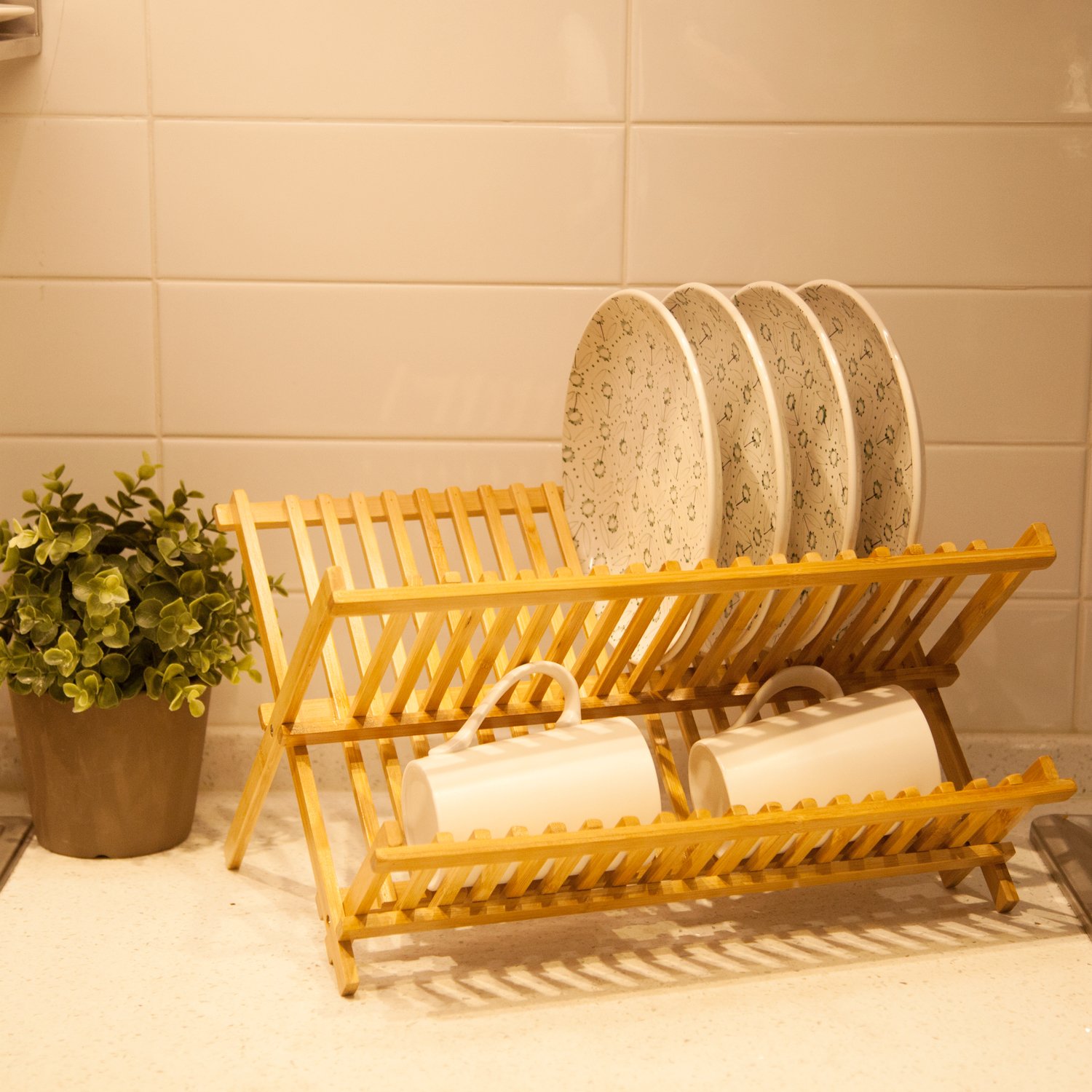 Not only can you store the dishes, but also you can leave them stand up after disposing dishes as a kitchen tableware storage, such as cups, bowls and so on.