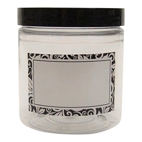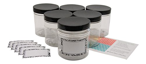 Clear 8 oz Plastic Jars with Black Lids (6 pk) with Labels - PET Round Refillable Containers