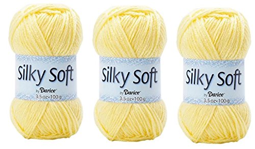 Darice 185-Yard Yarn, 3.5-Ounce Silky Soft Yellow (3-Pack) Bundle.