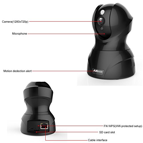 Wireless Security Cameras, Amgaze 720P HD Baby Monitor IP Camera Home Security Surveillance With Motion Detection, Two-Way Audio, PIR Night Vision Mode, Alert Information(Black)