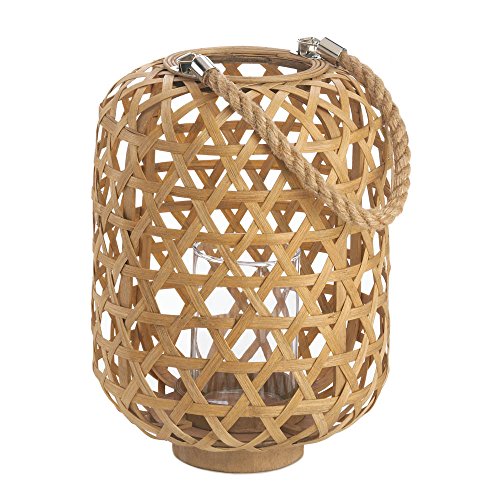 -. Feature : Add the candle of your choice and set the lantern on its base or hang it from the thick rope handle. / Dimensions: 9" diameter x 13 1/2" high; 21" high with handle. / Item weight: 1.2 lbs. / Bamboo and glass.