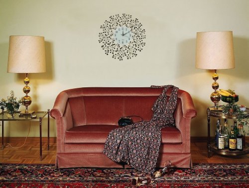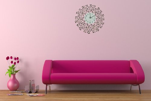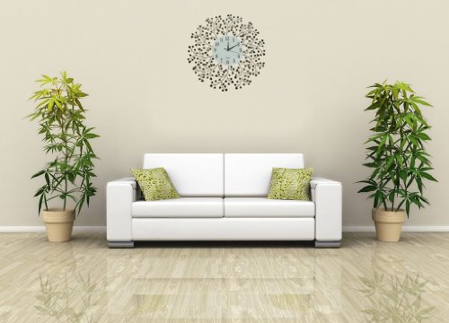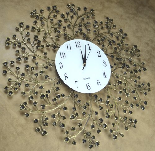 - Feature : Decorative metal wall clock diameter 24.50" and glass dial 9.50" is easy to view from a distance. / Number Dial, Silent Non-ticking, high quality quartz battery operated movement. / Aprox weight 5 lbs, Frame & flowers are made with gold & black metal which highlights any wall. Please beware of cheap plastic reproductions. / The design for this Decorative metal wall clock is inspired from blooms of spring flowers. / Requires one AA battery (not included).