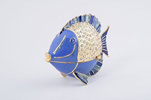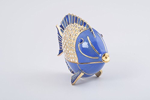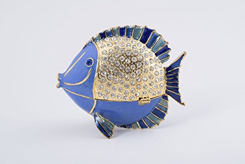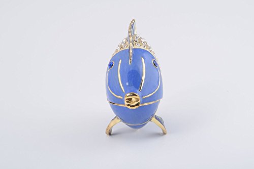 Golden Blue Fish Faberge Style Trinket Box Decorated with Clear Austrian Crystals