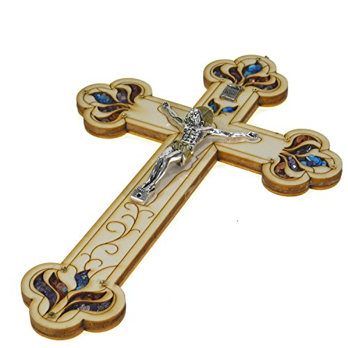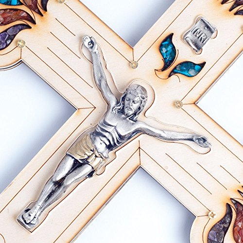 Beautifully Wall Mount Wood Cross Detailed Saint Benedict Pewter Corpus Jesus Crucifix Cross Made in the Holy Land
