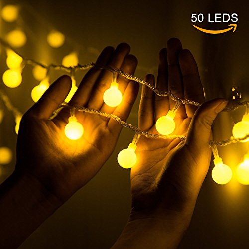 -. Feature : This 16feet/5M globe string light is composed of 50 translucent globes, the diameter of each globe is 0.7 inch with every 4 inch spaces. / The globes led lights are made of translucent plastic, which are not so fragile than glass globes. / LED bulb ensures bright with less heat than traditional incandescent bulb. You can choose different modes between Flash and Steady On. / Instead of charging plug, this globe string light is powered by 3 AA batteries. It has newest waterproof battery box. / You can decorate your garden, bedroom, living room, dining room, kitchen and anywhere you want for indoor and outdoor celebration or decoration. It has no requirements to the environment such as dust, rain, snow and wet.