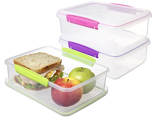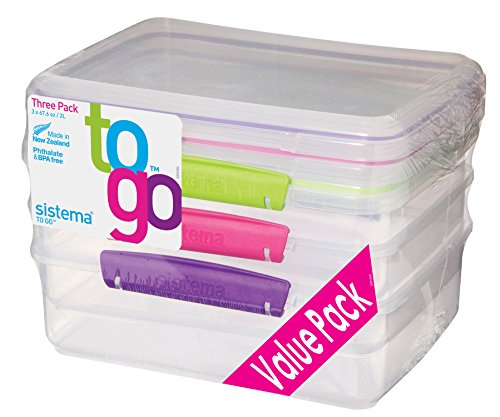 Sistema To Go Collection Rectangle Food Storage Container, 67.6 Ounce/ 8.45 Cup, Assorted Colors, Set of 3