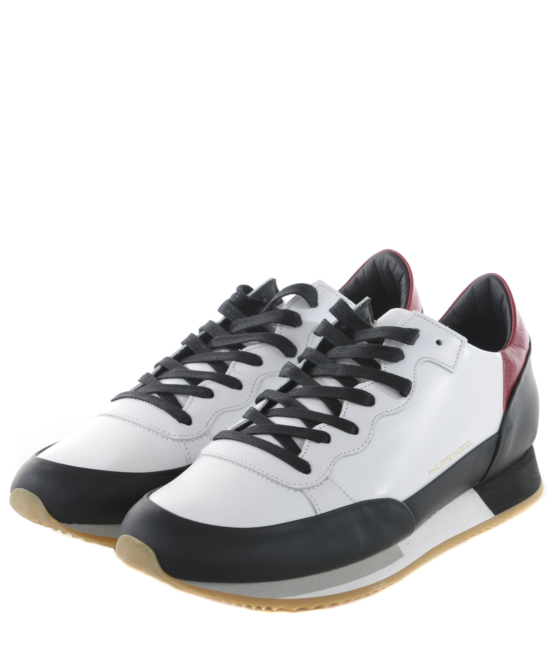 Sneakers uomo Philippe Model in pelle Bianco/Nero. Inserto in pelle a contrasto sul retro. Logo laterale stampato. Stringate. Interno in spugna di cotone. Suola in gomma bicolore. Misura in foto 41