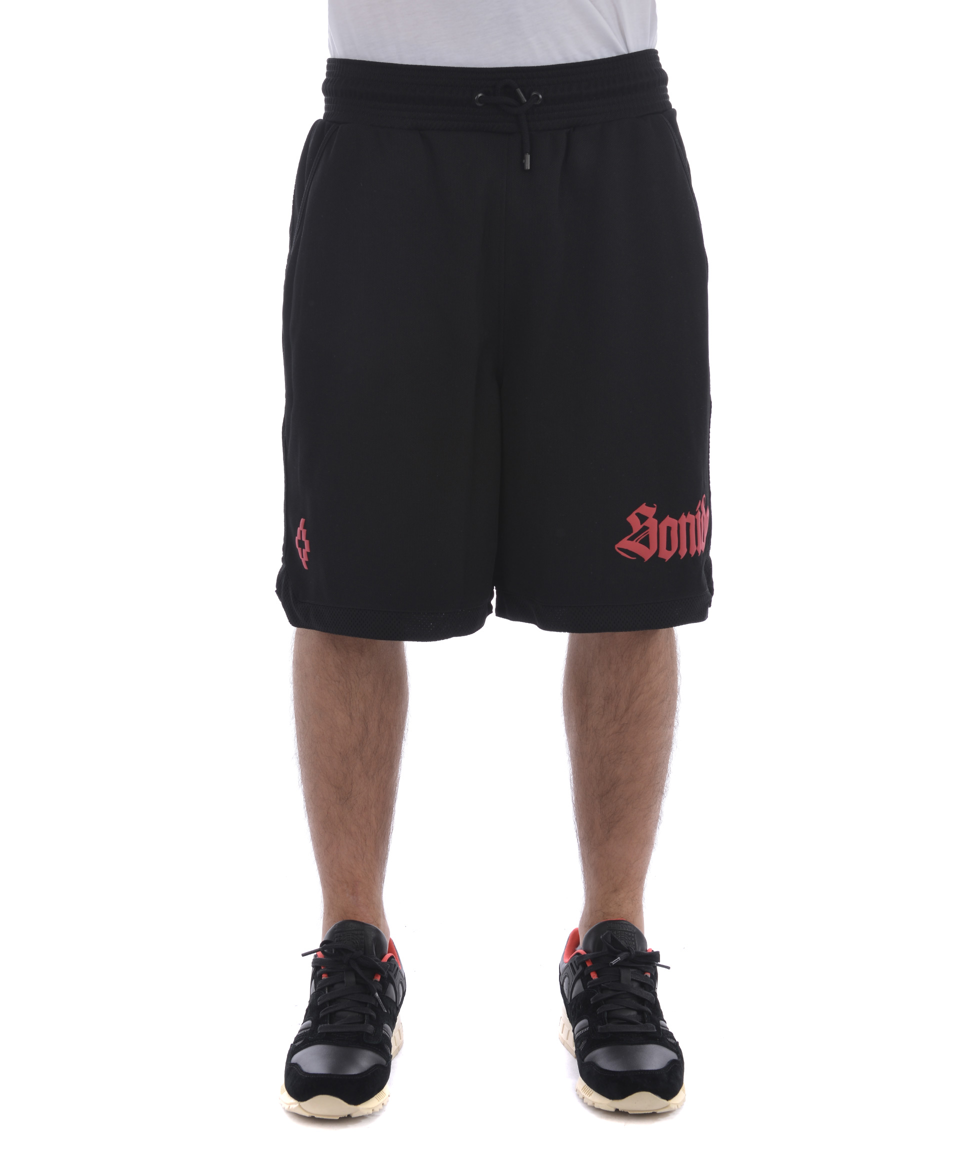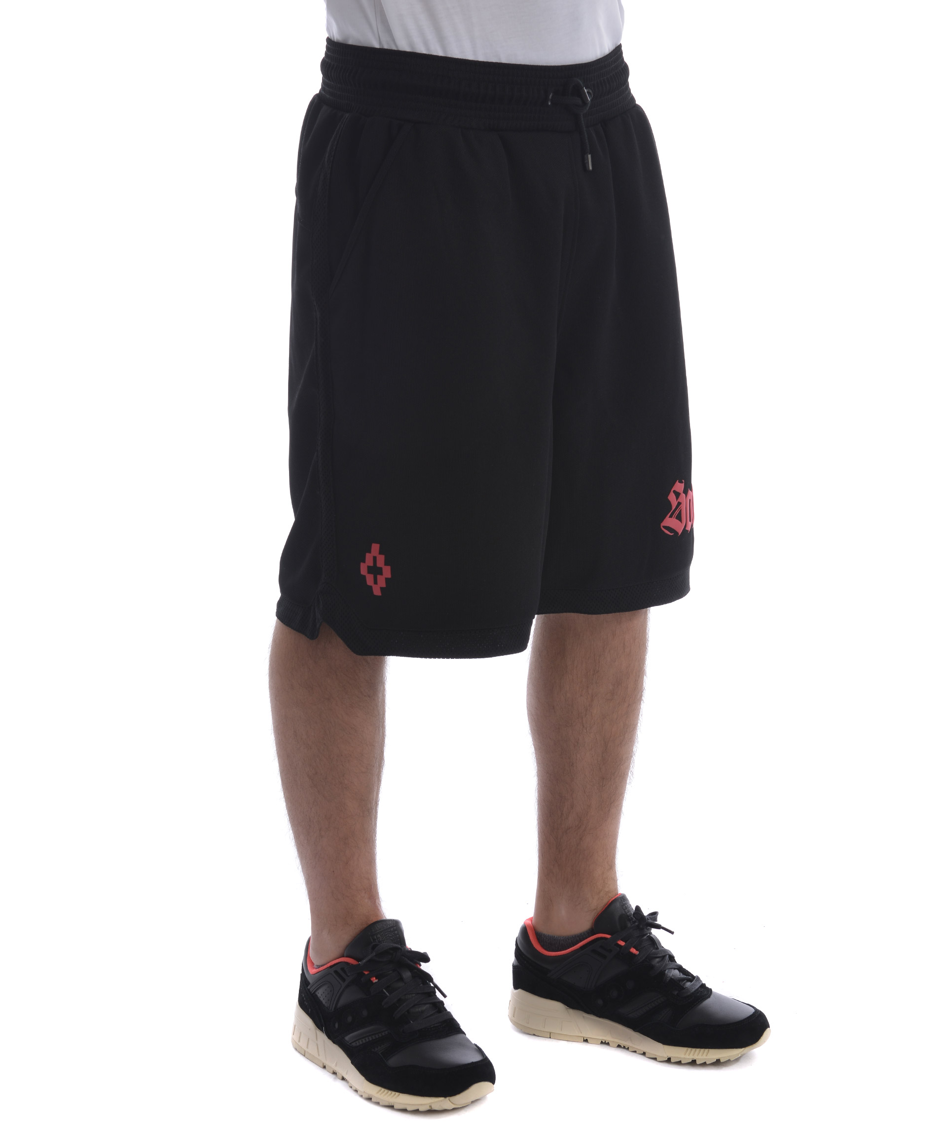 Santos Shorts from Marcelo Burlon: Black Santos Shorts with logo on front, side pockets, a knee length and a elasticated waistband with drawstring fastening.