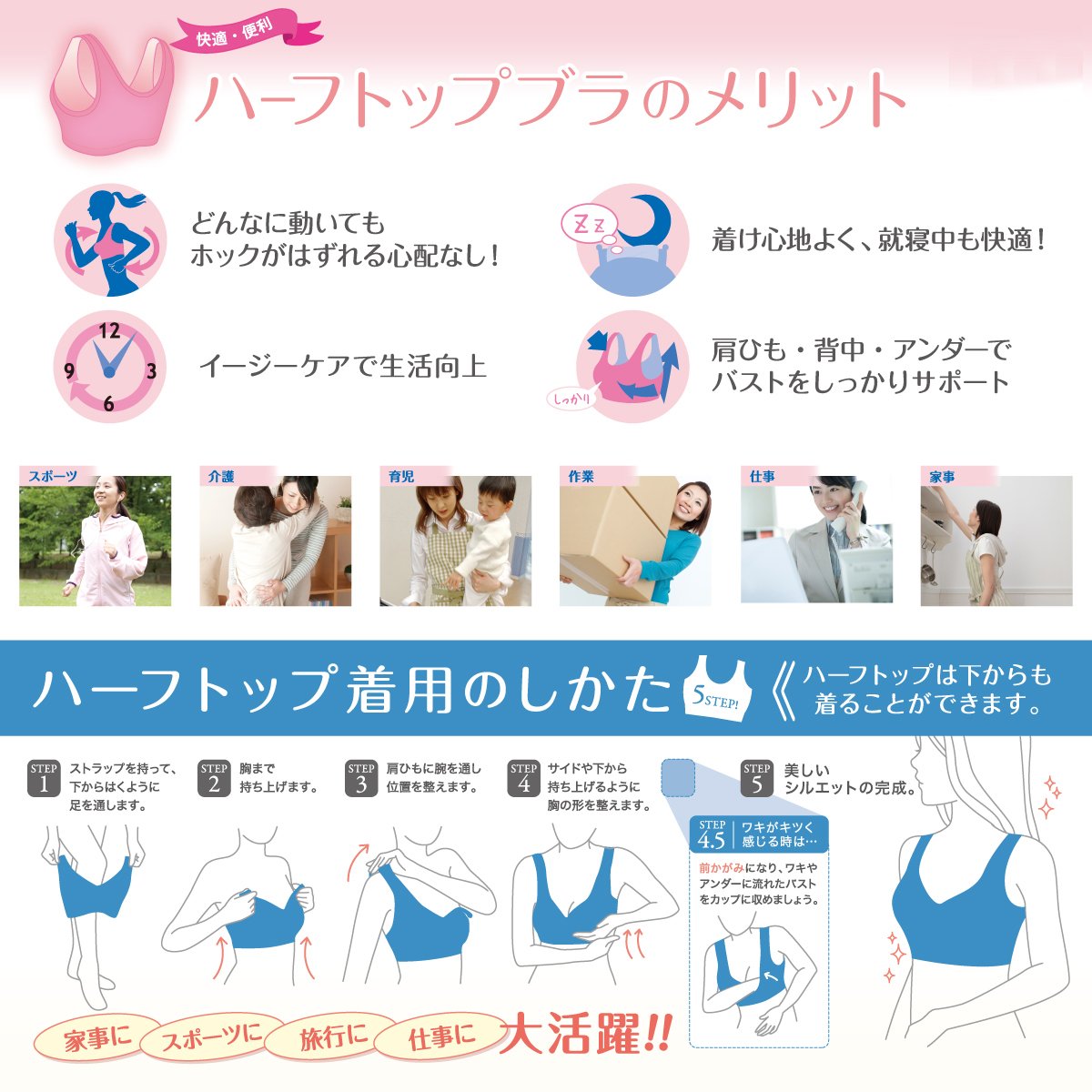 [Bust]: M: 79 to 87 cm, L: 86 to 94 cm, LL: 93 to 101 cm, 3 L: 100 to 108 cm