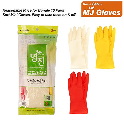 MJ 3 Pairs Household Short Mini Natural Rubber Cleaning Wash Gloves L