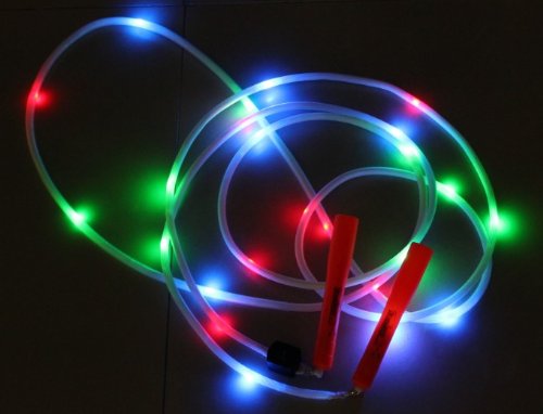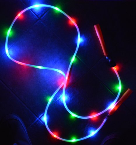 Studio : Ultra Speed Ropes, Inc. Publisher : Ultra Speed Ropes, Inc. Binding : Sports Product Description 14 Foot LED Light Up Rope Durable "Light Up" double Dutch jump rope. Perfect for jumping in the dark. Sold Individually. Buy two for a double Dutch set. 36 bright, flashing LED lights in each rope. Proven to be very durable and popular Extremely smooth turning. Comes with 6" durable plastic handles. Each rope is 14' long. 3 LED flashing modes: constant light, fast flashing slow flashing. Comes with 2 long-lasting CR2025 batteries. 0