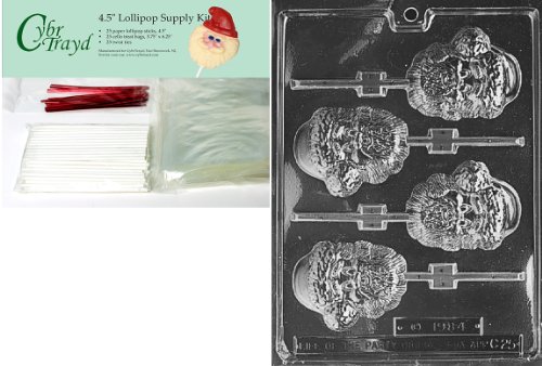 Cybrtrayd 45stK25R-C025 New Santa Lolly Christmas Chocolate Mold with Lollipop Kit