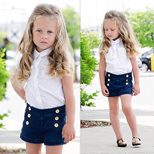-. Binding : Apparel -. Brand : Sunbona -. Color : Show as the Picture -. Department : baby-girls -. Feature : Material: Cotton Blend,Denim / Brand new with high quality / Sleeve Length:Short Sleeve / Cute and Comfortable, playwear / homewear for your little P.R.Incess / please choose the right size according to the size chart in the picture. -. ProductGroup : Apparel -. ProductTypeName : SHIRT -. Size : 24M (24 Month) -. Title : Sunbona Little Girls Summer P.R.Incess Blouse Short Sleeve +Short Jeans Pants Outfits Set Clothes