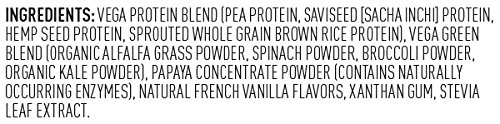 - Feature : Each scoop contains 15 grams of complete, multisource, plant-based protein / The equivalent of two servings of veggies including kale, broccoli and spinach / Only 90 calories per serving with no sugar added / Vegan, Non-GMO; and free of dairy, gluten, soy, artificial flavors and colors