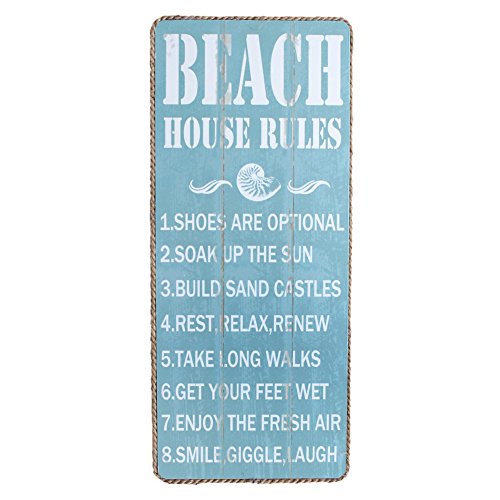 Wooden Beach House Rules Wall Plaque with Jute Edging
